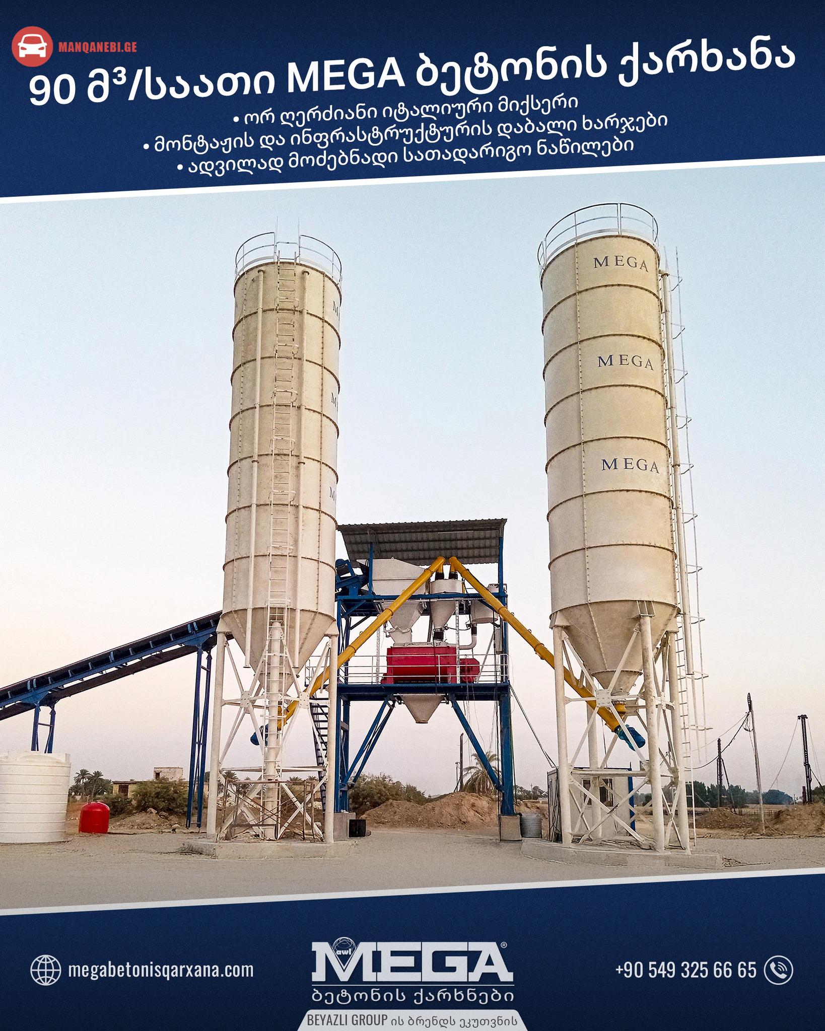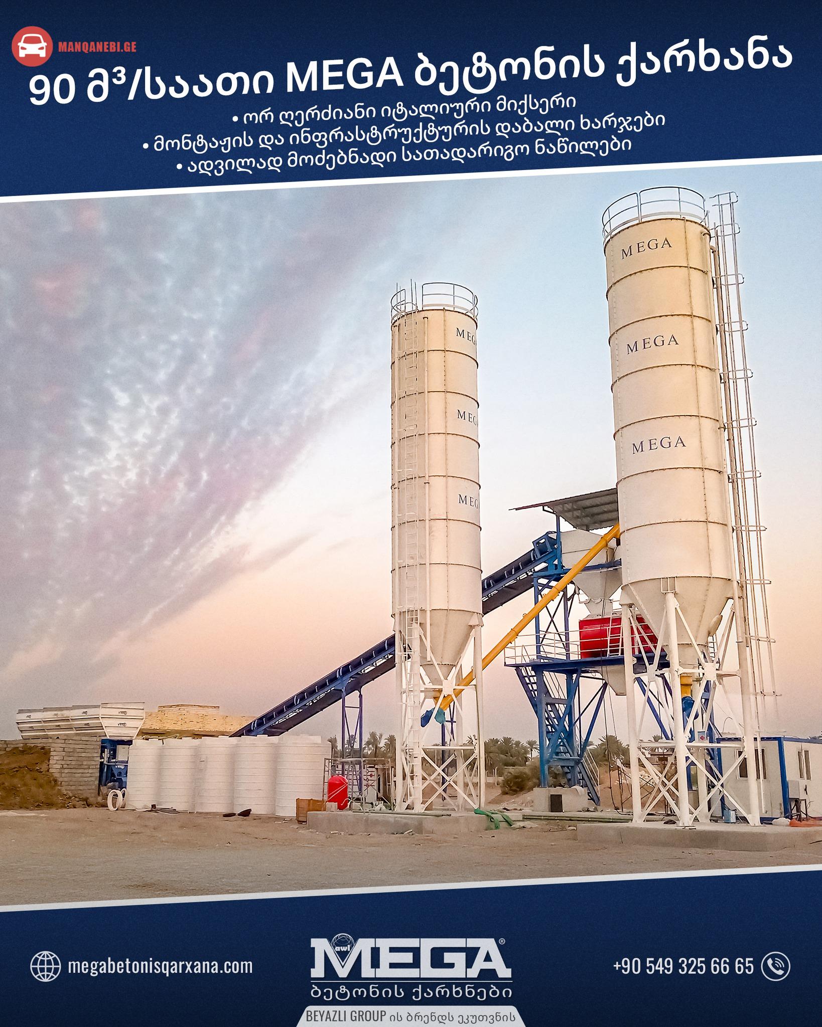 იყიდება MEGA-ის მარკის საათში 90 მ³ წარმოების სტაციონალური ბეტონის ქარხანა. იტალიური ბრენდის უმაღლესი ხარისხის TWIN SHAFT მიქსერი / მოცულობა 1.5 მ³. ასევე გვაქვს სხვადასხვა წარმადობის ბეტონის ქარხნები. SCADA კომპიუტერული პროგრამის მართვა. ელექტრო გაყვანილობა გერმანული ორიგინალი SIEMENS - SCHNAIDER. ბეტონის ქარხნის დისტანციური მართვის შესაძლებლობა. კომპიუტერული პროგრამის დამცავი ონლაინ UPS – PLC.სპეციალური ძრავებით ძალიან სწრაფი და ხარისხიანი წარმოება აქვს. მაქსიმალური მომგებიანობა პერსონალის დაბალი მოთხოვნით - მოვლის დაბალი ღირებულება. წარმოება – მიწოდება – დამონტაჟება ვადაში. სათადარიგო ნაწილები ყველგან მოიძებნება. უფასო დამონტაჟება და ტესტირება ბეტონის ქარხნის. უფასო ინფრასტრუქტურის პროექტი. ფუნქცია, რომელიც შეიძლება ბეტონის ქარხნის ადვილად გადაიტანოთ სხვა ობიექტზე. 2 წელი გარანტია. 5 წლიანი უფასო სერვისი. ელ-ფოსტა: [email protected] მობ: +90 549 325 66 64 მობ: +995 571 91 26 26
