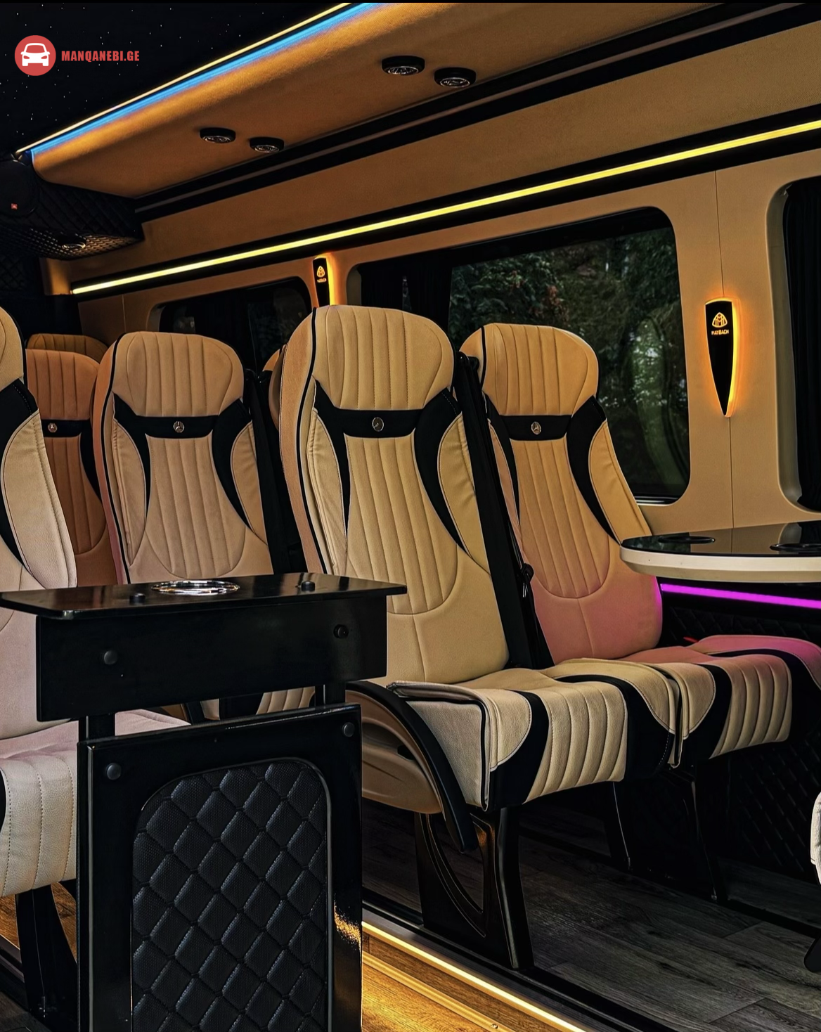 ქირავდება 20+1 ადგილიანი მიკროავტობუსები მძღოლით, ავტომობილები არის მაქსიმალურად კომფორტული და მგზავრებზე მორგებული, თითოეულ სავარძელს აქვს: USB TYPE-C, USB პორტები ტელეფონის დასამუხტად. სავარძლების რეგულირება. კონდიციონერის საჰაეროები ინდივიდუალურად. დენის წყარო 220 ვოლტი. მაცივარი, ცივი სასმელებისათვის. ტელევიზორი SMART TV მიკროფონი გიდისთვის